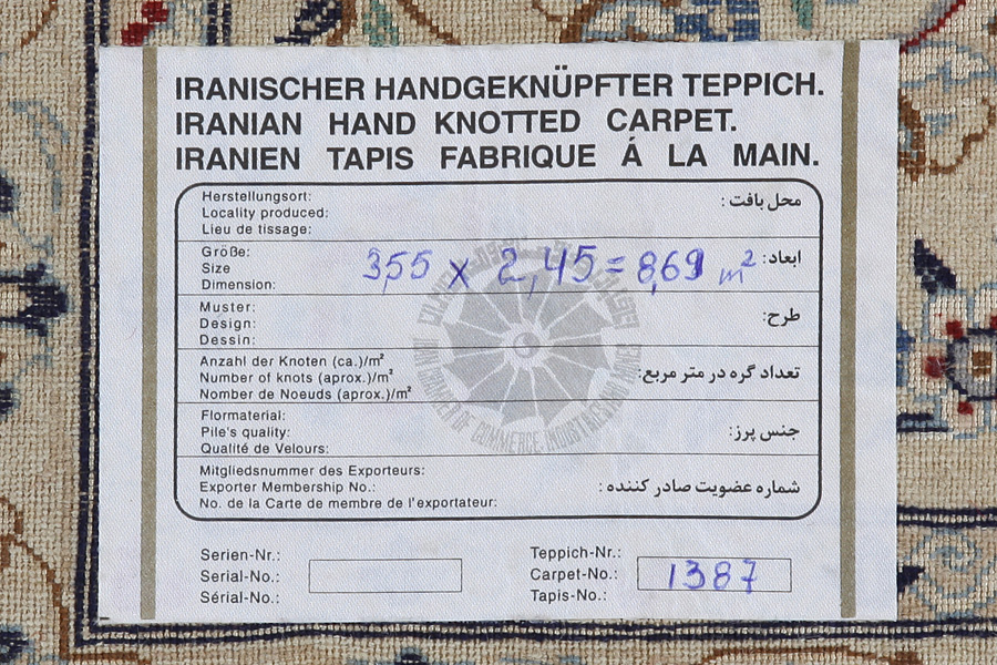 Covoare Nain: Nain este un oraș mic în centrul Iranului, în apropiere de faimosul oraș Isfahan.Inainte de începerea secolului 20, a fost cunoscut pentru producerea țesăturilor din lână de înaltă calitate,lucrate manualde.Cu toate acestea, din cauza declinului treptat al vanzarilor de țesături, au început să țeasa covoare manuale a caror executie a fost incredintata tesatoarelor din Isfahan.Astfel, au creat propriul lor stil,cu un medalion mare în centru ,folosind culori luminoase cum este cremul si nuanțele de albastru sau rosu.Densitatea mare de noduri și materialele de înaltă clasă (lană și mătase),au facut sa fie apeciate drept covoare de o calitate foarte ridicata.Covoarele sant țesute si in zonele învecinate și nu numai în orașul Nain.La covoarele Nain s-a folosit cu succes cunoscutul model Shah Abbas.În cele mai multe covoare de obicei este folosit bumbacul la urzeala.Urzeala constă dintr-un număr de fire menționate în continuare "La".Covoarele Nain au 4 fire (4 La) sau 6 fire (6 La),In zilele noastre,in Nain se produc numai covoare stilate din calitatea 4 sau 6 La.Covoare cu 9 și 12 La se produc mai mult in regiunea Khorasan,adica in Kashmar si Mashhad. O renumita casa de covoare din Naim este Casa Habibian.Covoarele țesute în atelierele lor, sant printre cele mai bune și cele mai căutate covoare din lume.