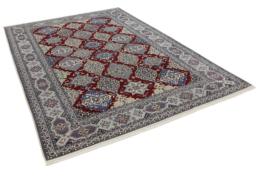Covoare Nain: Nain este un oraș mic în centrul Iranului, în apropiere de faimosul oraș Isfahan.Inainte de începerea secolului 20, a fost cunoscut pentru producerea țesăturilor din lână de înaltă calitate,lucrate manualde.Cu toate acestea, din cauza declinului treptat al vanzărilor de țesături, au început să țeasa covoare manuale a caror executie a fost incredintata tesatoarelor din Isfahan.Astfel, au creat propriul lor stil,cu un medalion mare în centru ,folosind culori luminoase cum este cremul si nuanțele de albastru sau rosu.Densitatea mare de noduri și materialele de înaltă clasă (lană și mătase),au facut sa fie apeciate drept covoare de o calitate foarte ridicata.Covoarele sant țesute si in zonele învecinate și nu numai în orașul Nain.La covoarele Nain s-a folosit cu succes cunoscutul model Shah Abbas.În cele mai multe covoare de obicei este folosit bumbacul la urzeala.Urzeala constă dintr-un număr de fire menționate în continuare "La".Covoarele Nain au 4 fire (4 La) sau 6 fire (6 La),In zilele noastre,in Nain se produc numai covoare stilate din calitatea 4 sau 6 La.Covoare cu 9 și 12 La se produc mai mult in regiunea Khorasan,adica in Kashmar si Mashhad. O renumita casa de covoare din Naim este Casa Habibian.Covoarele țesute în atelierele lor, sant printre cele mai bune și cele mai căutate covoare din lume.