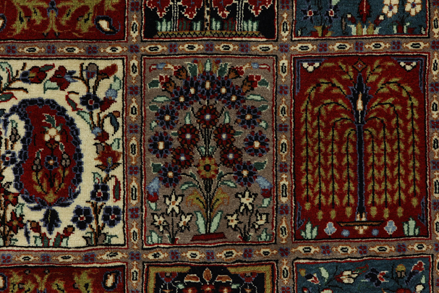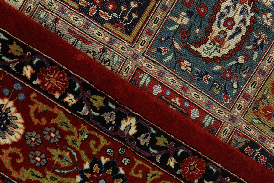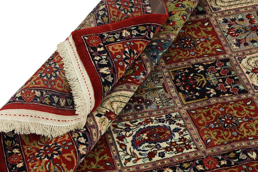 Covoare Qum: Qum sau Ghom este un oraș în Iran considerat sacru de catre Siiți.Acesta este situat la 156 km sud-vest de Teheran pe malurile raului omonim și este capitala provinciei de Qum.Tesutul de covoare Qum s-a dezvoltat pe o scară largă în anii 1930 și s-a experimentat in folosirea diverselor modele de covoare vechi Senneh , Kashan, Isfahan dar și a altor covoare persane de renume.O nouă generație de designeri de au creat modele noi folosind culori rare pentru covoarele persane, cum ar fi verde deschis și turcoaz-albastru.Astfel, covoarele Qum au dobandit un caracter nou, propriu.Printre multe modele cunoscute este si gradina (Khesti).Gradina este un proiect cu mai multe patrate repetate în care se regasesc animale sau flori (imagini cu pasari, lei inaripati, dragoni), reprezentări vechi persane de scene de vanătoare sau scene istorice diferite .Covoarele de rugăciune cu diferite teme religioase sant de asemenea bine cunoscute.Aceste covoare sunt lucrate cu o mare densitate de noduri și materiale de înaltă clasă.Mătasea și lana fina de calitate confera covoarelor un grad inalt calitativ.