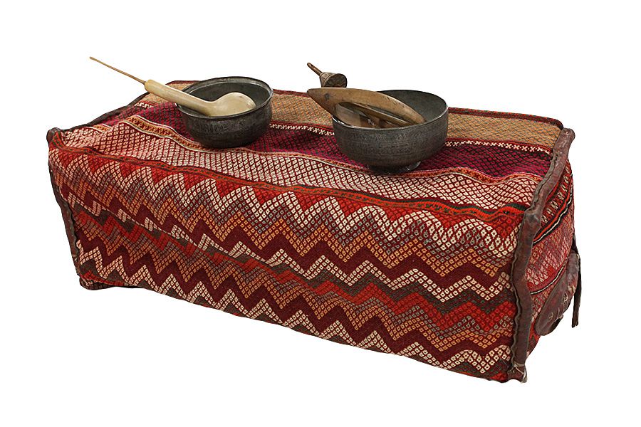 Bedding Bags: De obicei, piesele erau țesute cu o tehnică numită Sumak, creând diverse modele pe părțile laterale, precum și partea de jos țesută. Uneori, buclele de lână erau cusute în partea de sus a pungii, astfel încât să poată fi fixată cu bretele la cămile. Când nomazii care foloseau pungile locuiau în corturi, așternutul care conținea in sacii putea fi îndepărtat și geanta atârnată pe pereții cortului.
